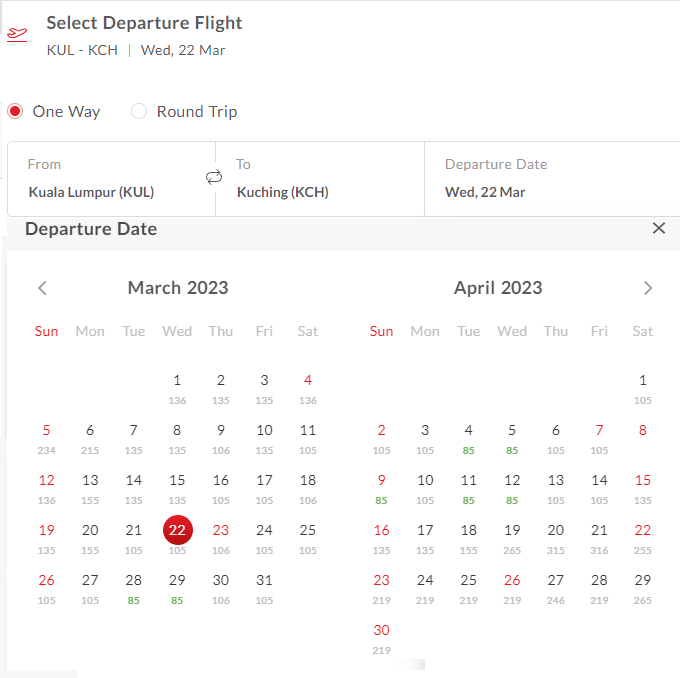 Daripada carian mudah ini, kita boleh ketahui bahawa harga tiket termurah adalah RM85 dari KL ke Kuching pada hari-hari tertentu. Manakala harganya pula adalah berbeza-beza dari hari ke hari. Dan kita akan memperolehi maklumat yang lebih detail lagi apabila kita klik pada mana-mana tarikh yang dingini.